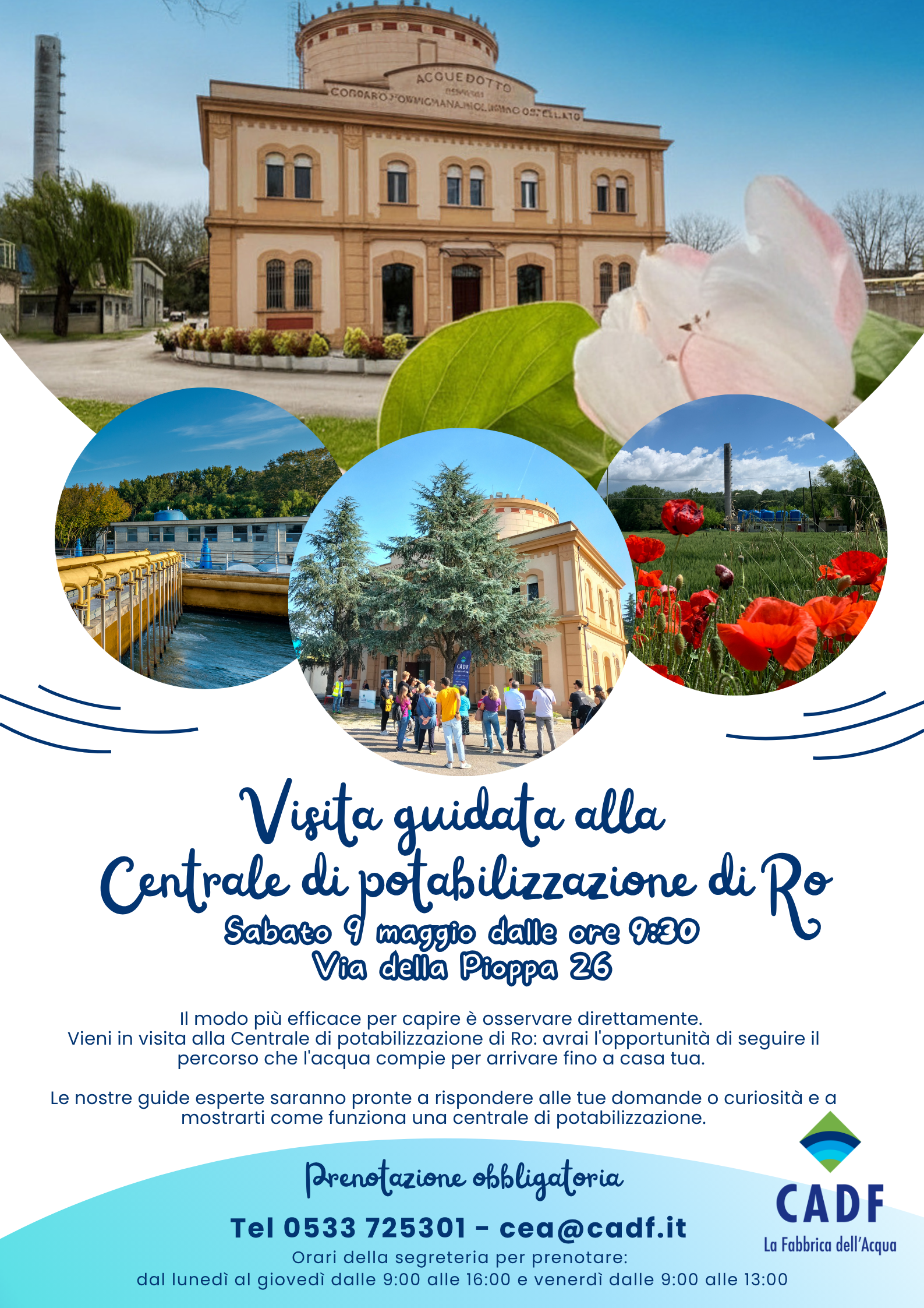 Sabato 9 maggio 2026 CADF – La Fabbrica dell’Acqua apre al pubblico la centrale di potabilizzazione di Ro, offrendo alla cittadinanza un’opportunità speciale per esplorare da vicino il percorso dell’acqua: dalle fonti naturali fino alle nostre case, e ritorno all’ambiente.