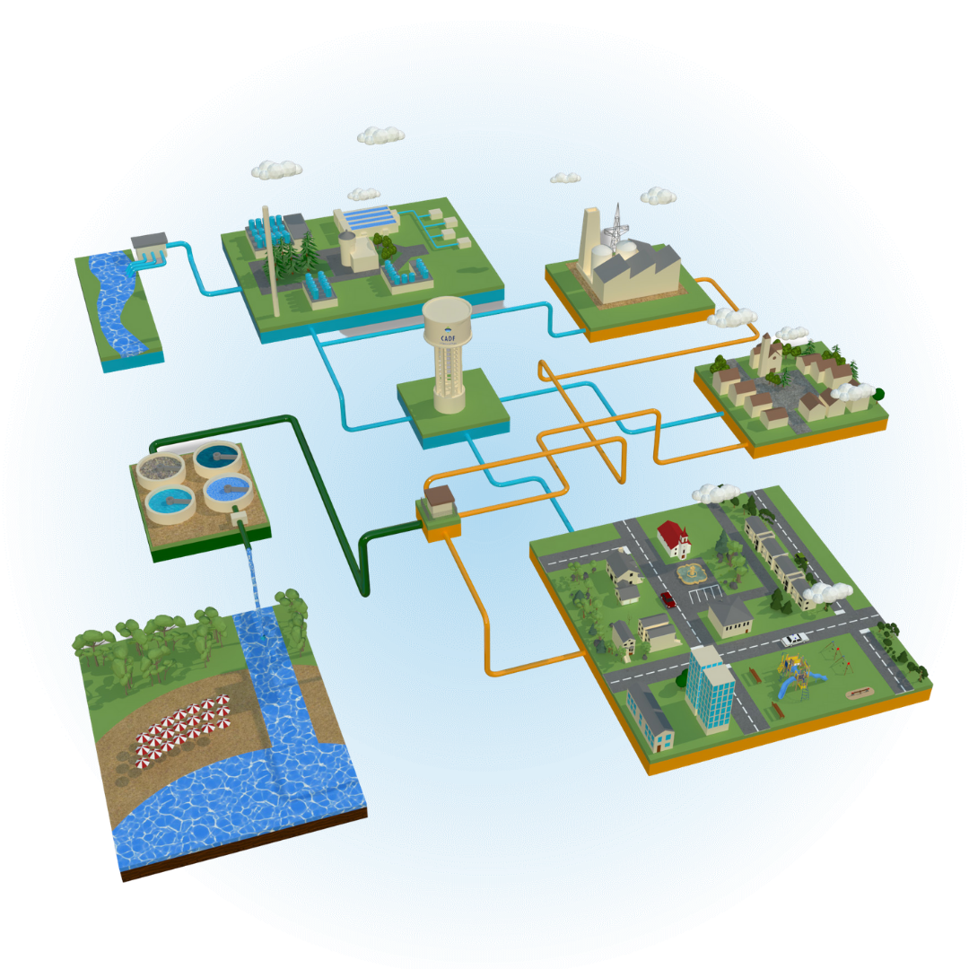 La gestione del Servizio Idrico Integrato prevede un ciclo produttivo suddivisibile in tre grandi aree.